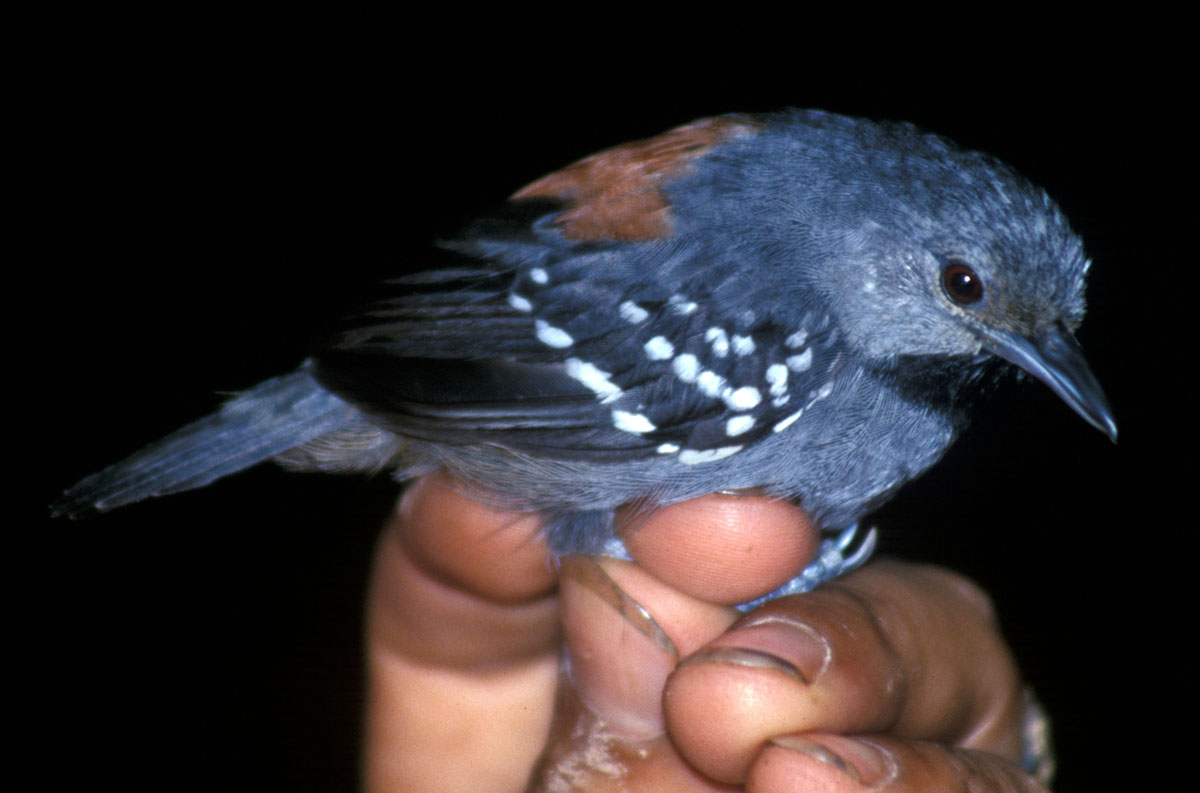 Antwren,_Roosevelt Epinecrophylla dentei Found: Brazil