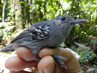 Antwren,_Plain-winged Myrmotherula behni Found: Brazil, Colombia, Ecuador, French Guiana, Guyana, Venezuela
